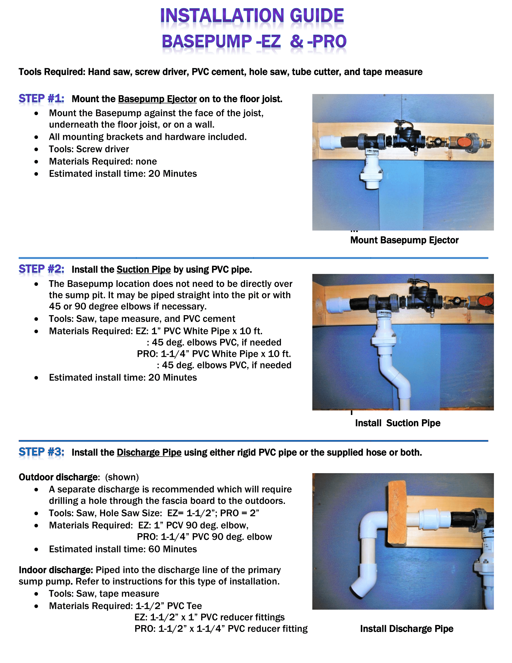 - Only basic plumbing skills are needed. If you can read and follow directions, you should be able to install a Basepump HB1000-PRO or RB750-EZ.